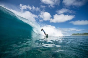 White beaches, crystal-clear waters, and perfect waves, the Maldives are a true surfing paradise. Photo Credits: Jon Frank