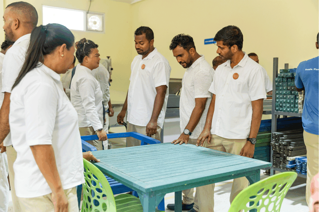 In addition to handling plastic waste generated by the resort, the facility also accepts plastic from the nearby inhabited island of Kudafari, highlighting the resort’s commitment to supporting surrounding communities. Under the initiative, 60% of the upcycled items are retained by the resort, while 40% are distributed through CLEAN Maldives, with both partners donating selected items for use in public spaces such as island parks, beaches and communal areas.